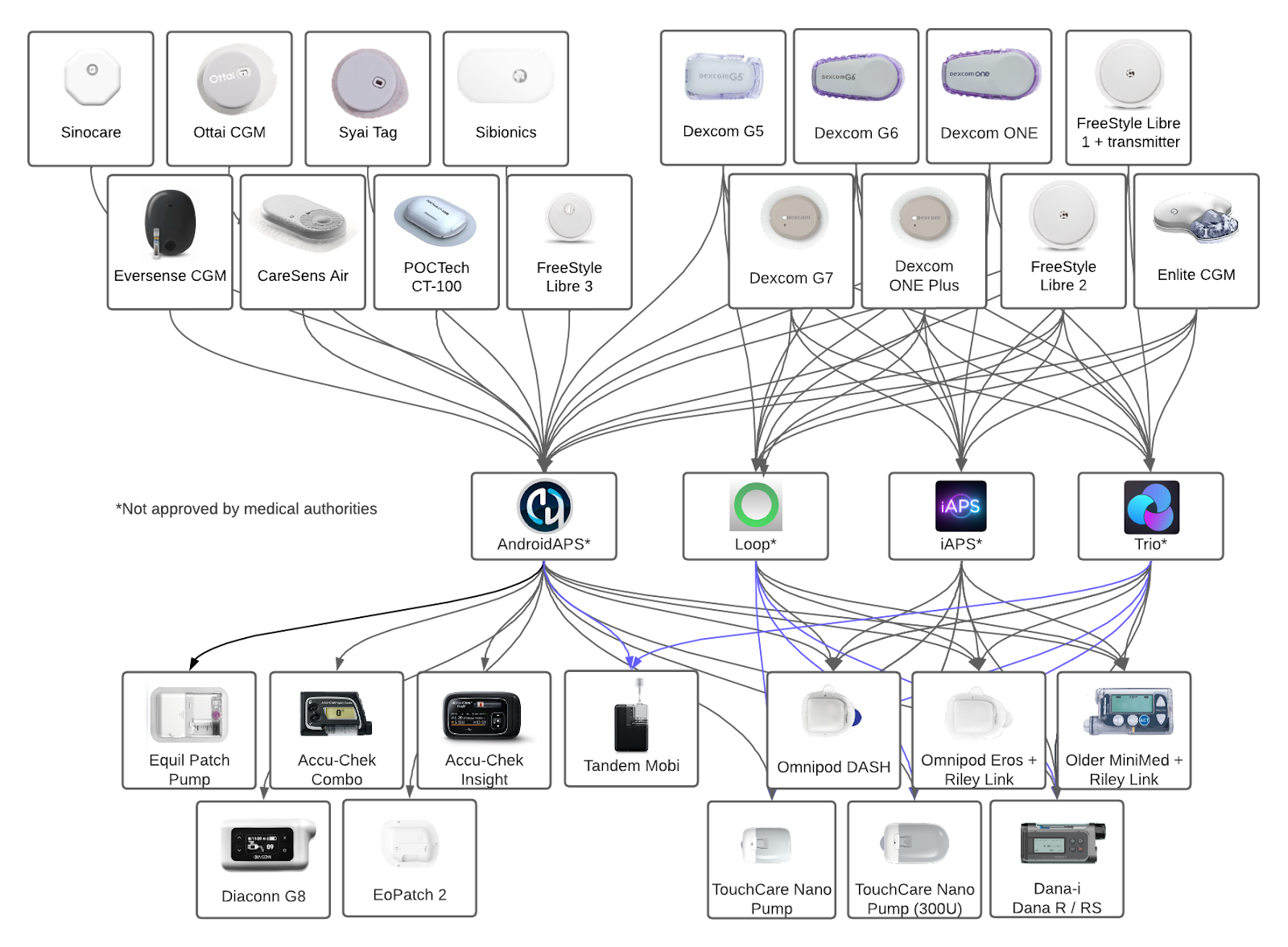 - De connectiviteit tussen verschillende pompen en CGM's neemt toe.